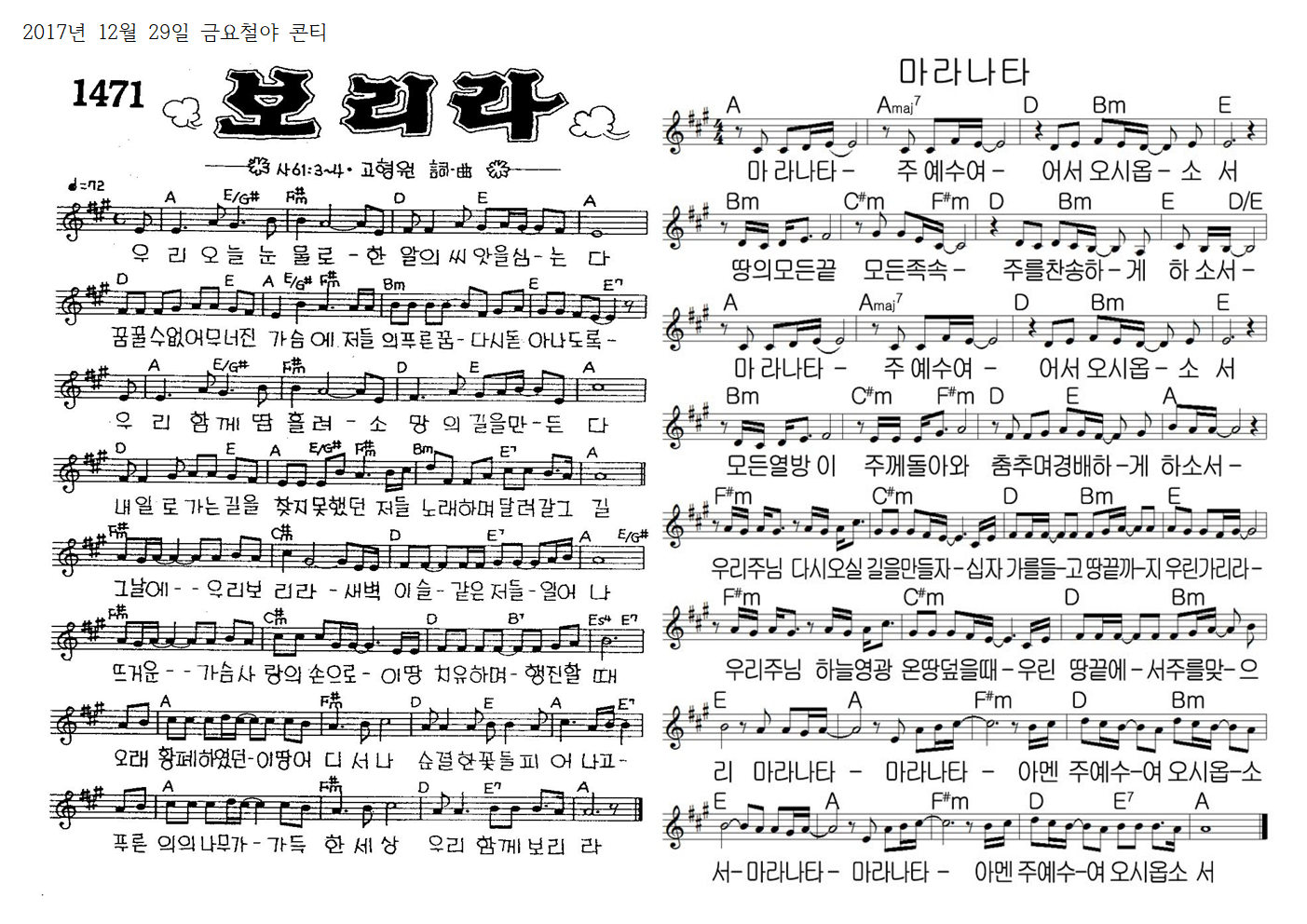 17.12.29. 금요찬양콘티