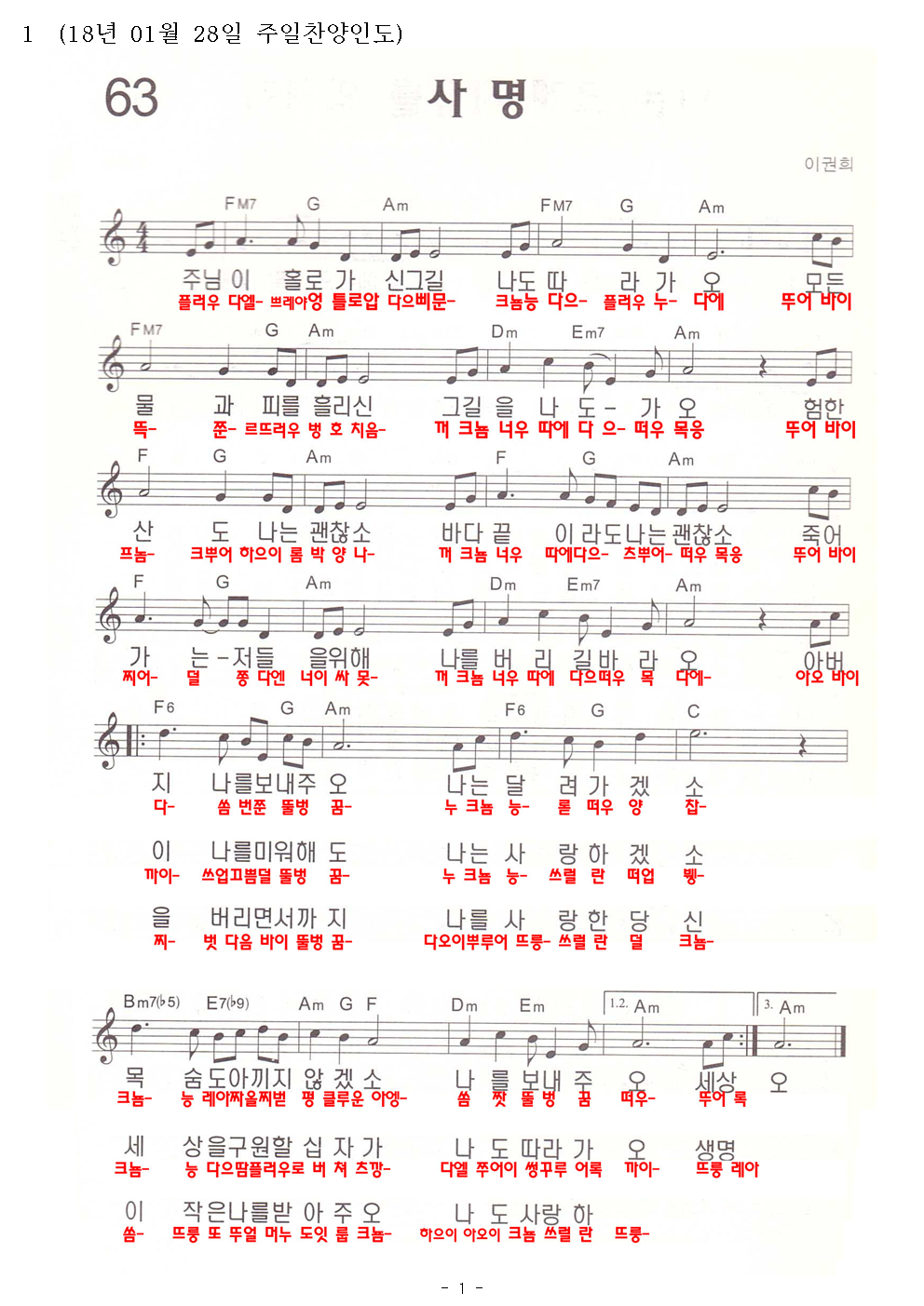| 다음글 | 18.02.02. 금요찬양콘티 | 운영자 | 2018.02.02 | 0 | 230 |