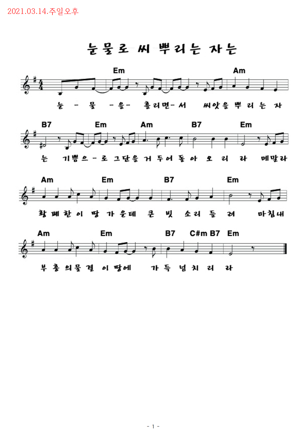 21.03.14. 오후 찬양예배 콘티